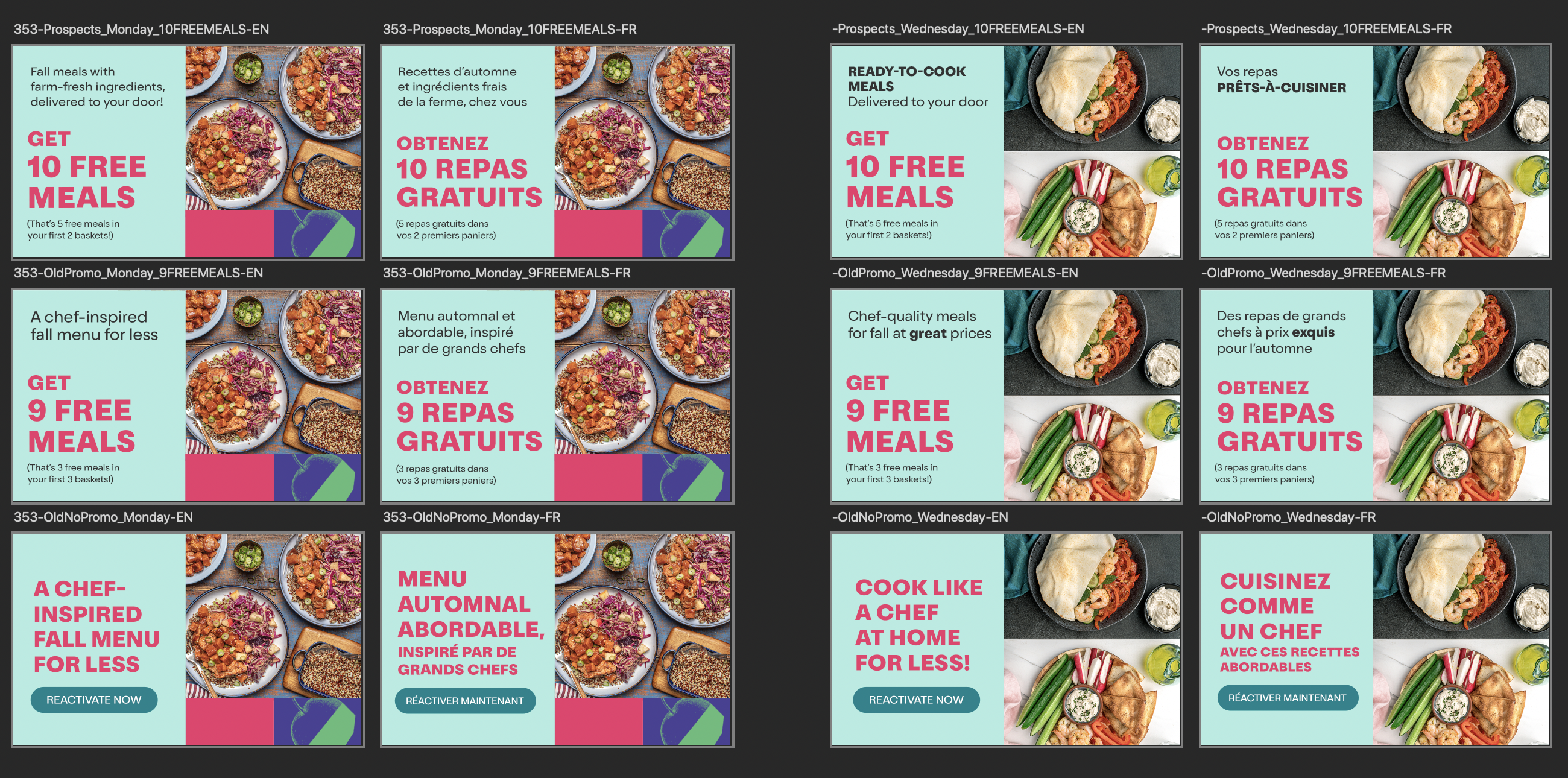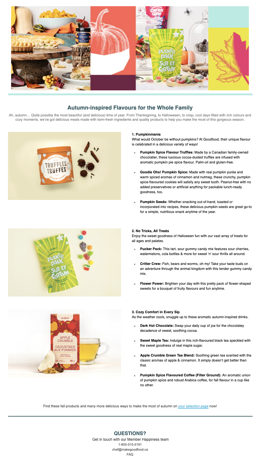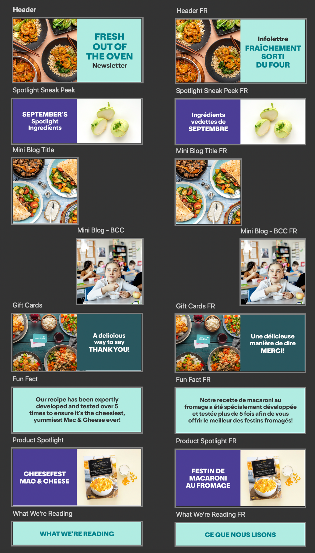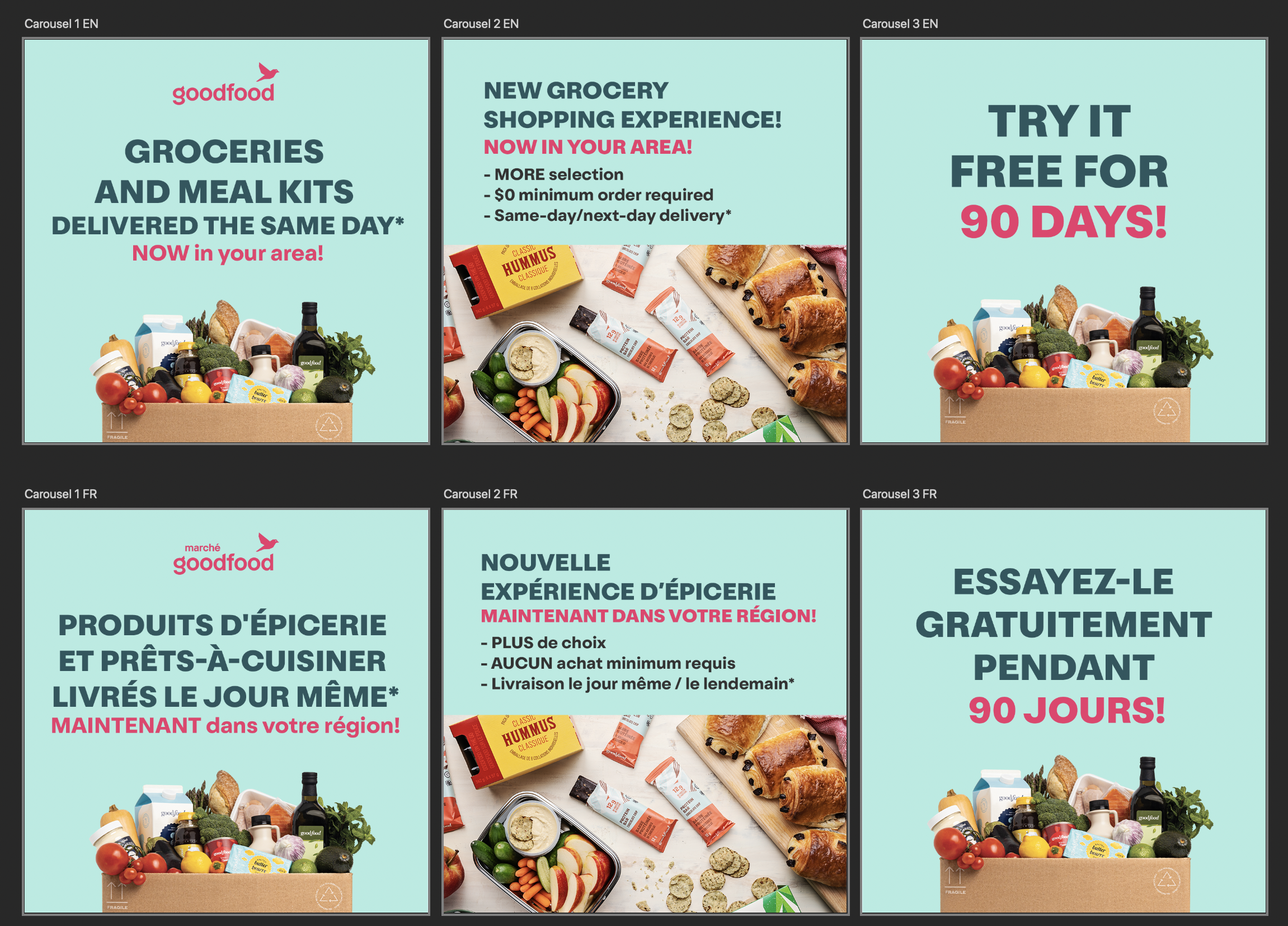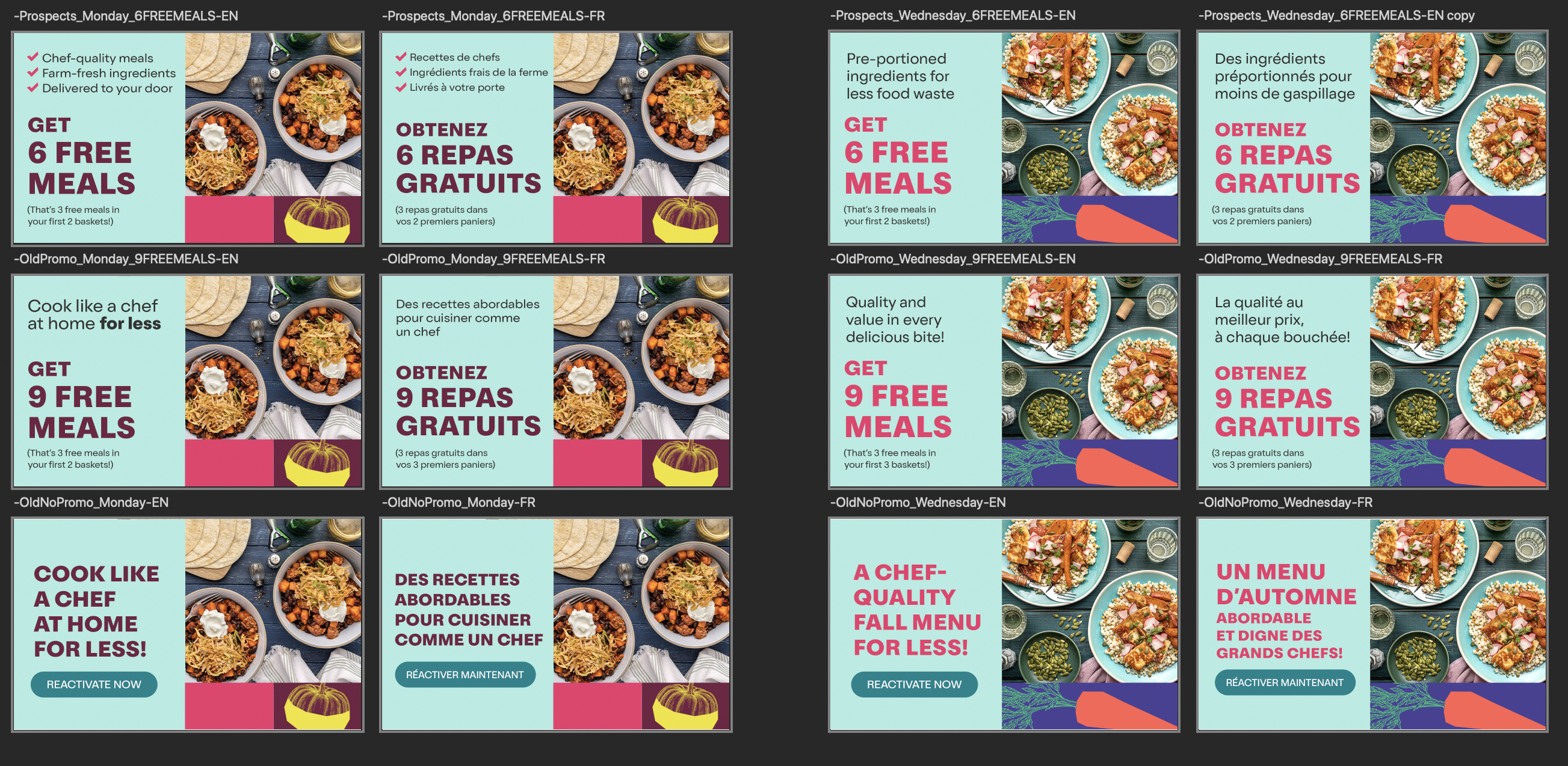 As Senior Copywriter for Canada’s leading online grocer (and third fastest growing company in North America), I led content creative for all national marketing campaigns and produced a multitude of marketing assets email/newsletter copy, digital/web copy, monthly flyers, mobile ads, short-form video, blogs, animated social GIFs and more.